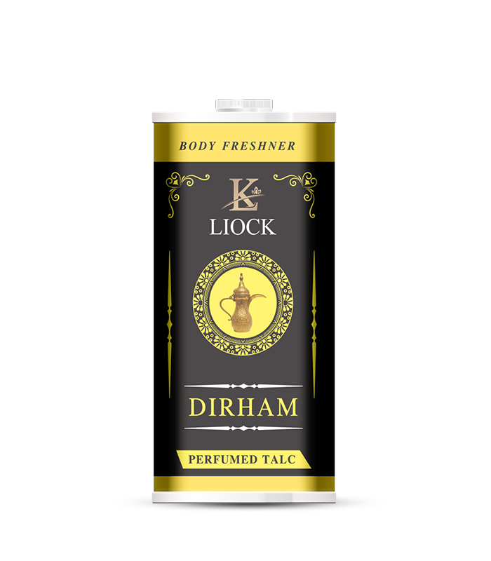 Stay refreshed and confident with Dirham Tin Talcum Powder from Liock. Its effective formula absorbs moisture and neutralizes odor, ensuring long-lasting comfort and freshness.